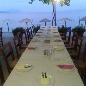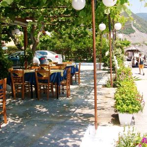 Homemade appetisers (spicy cheese spread, aubergine dip, beet salad, pies and others), casseroles (rabbit in lemon and orange sauce, crayfish pasta, tomato meatballs with couscous and much more) and special desserts (ice cream, spoon sweets), always served on the house, are truly worth sampling.